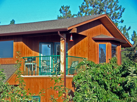 The carriage house surrounded by fruit trees